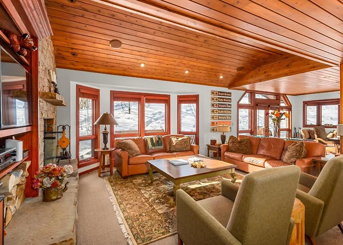 The 5-bedroom Ski-In Ski-Out Townhome Near Adam'S Ave Ski Access By The Woodrun V Townhouses Snowmass Village villa entices guests to enjoy snow skiing, hiking, and cycling and offers proximity to the Snowmass Ice Age Discovery Center, located nearly a 5-minute stroll away. Featuring a Jacuzzi, the Snowmass Village holiday home is nestled 3.9 km from the Rim Trail South.